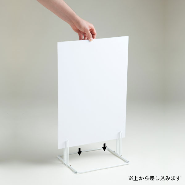 スタンドの隙間に挟むだけで簡単にパネルを立てられます!