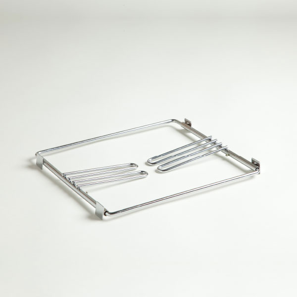 使用方法はボードやパネルを差し込むだけ。素材は耐久性の優れたスチール、クロームメッキ製。
